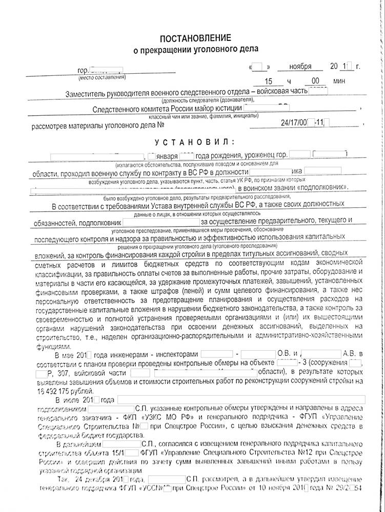Заместителем руководителя ВСО было принято решение прекратить уголовное дело в отношении моего Доверителя по реабилитирующим обстоятельствам.